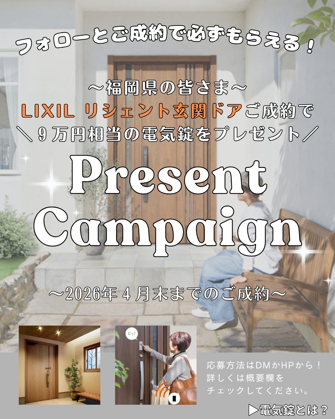 LIXILリシェント玄関ドアのリフォームご成約の方全員へプレゼント致します🎁